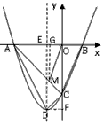 | 解:(1)∵由平移的性質(zhì)知, ∴h=-1,k=-4; (2)由(1)得 當(dāng)y=0時, ∴A(-3,0),B(1,0), 又當(dāng)x=0時, ∴C點坐標(biāo)為(0,-3) 又拋物線頂點坐標(biāo)D(-1,-4), 作拋物線的對稱軸x=-1交x軸于點E,DF⊥軸于點F,易知 在Rt△AED中,AD2=22+42=20, 在Rt△AOC中,AC2=32+32=18, 在Rt△CFD中,CD2=12+12=2, ∴AC2+CD2=AD2, ∴△ACD是直角三角形; (3)存在, 作OM∥BC交AC于M,M點即為所求點; 由(2)知,△AOC為等腰直角三角形,∠BAC=45°,AC= 由△AOM∽△ABC,得 過M點作MG⊥AB于點G,則AG=MG= OG=AO-AG=3- 又點M在第三象限,所以M(- |