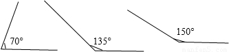 用量角器畫出70°、135°、150°的角.