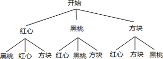 在一副撲克牌中取牌面花色分別為黑桃、紅心、方塊各一張,洗勻后正面朝下放在桌面上.