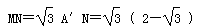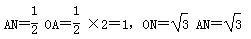 | 解:(1) 當在左邊相切時,∠OA′G=∠COB=60°, ∴∠DA'G=∠DA'E=60°, ∴A'E= 同理,當在右邊相切時,A''E= 此時點A''的坐標為(1+ 綜上可得A(1- (2) ① ∵ Rt△ACB旋轉(zhuǎn)得Rt△A'B'O, ∴ Rt△ACB≌Rt△A'B'O ∴ ∠A=∠A'=60° AO=A′O ∵ OF=OA=2 ∴ △A′OF是等邊三角形 ∴ ∠A'OF=60° ∴ ∠AOA′=30° ② ∵ △ANO中,∠OAN=60°∠AOA′=30° ∴∠ANO=90° ∴ A′N=A′O-NO=2- ∴ S△AMN= 過點F作FG⊥OA′于G, 則 FG= ∴ S△FOA′= ∴ SFOMN= S△FOA′-S△AMN= ∴ 四邊形FOMN的面積是(6- |