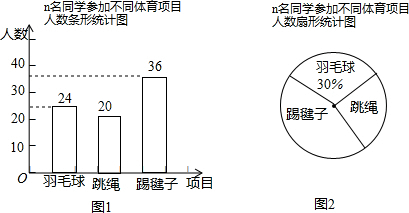 分析:(1)根據(jù)兩個統(tǒng)計圖得到最喜歡參加羽毛球占30%,而最喜歡參加羽毛球的人數(shù)為24,然后用24除以30%即可得到n的值;