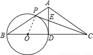 已知:如圖,在△ABC中,AB=AC,點(diǎn)D是邊BC的中點(diǎn).以BD為直徑作圓O,交邊AB于點(diǎn)P,連接PC,交AD于點(diǎn)E.