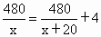 某農(nóng)場開挖一條長480米的渠道,開工后,每天比原計劃多挖20米,結(jié)果提前4天完成任務(wù),求原計劃每天挖多少米?(只列式,不求解)