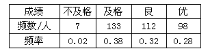 | 成績(jī) | 不及格 | 及格 | 良 | 優(yōu) |
