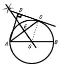 如圖,AB為⊙O的直徑,C為⊙O上一點,AD和過C點的切線互相垂直,垂足為D,銳角∠DAB的平分線AC交⊙O于點C,作CD⊥AD,垂足為D,直線CD與AB的延長線交于點E。