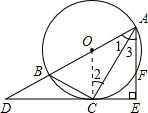 分析:(1)利用平行線判定定理得出CO∥AE,進而得出CO⊥DE,利用切線的判定定理得出即可.