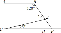 如圖AB∥CD,則∠1=( )