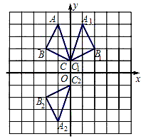 △ABC在平面直角坐標系中的位置如圖所示,將△ABC沿y軸翻折得到△A1B1C1,再將△A1B1C1繞點O旋轉(zhuǎn)180°得到△A2B2C2。請依次畫出△A1B1C1和△A2B2C2。