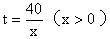 現(xiàn)有一水塔,裝滿水后,每小時放水10m3,4小時可以放完,已知放水時間t(h)與每小時放水量x(m3)之間的函數(shù)關(guān)系式為(    ),當(dāng)t=8h時x=(    )。