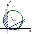 | (1)求OB的長. (2)⊙D經(jīng)過怎樣平移,使得⊙D與y軸相切?(寫出一種平移方法即可) (3)求陰影部分面積和. |