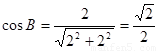 在正方形網(wǎng)格中,△ABC的位置如圖所示,則cosB的值為