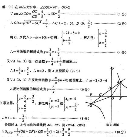 1.求該反比例函數(shù)和一次函數(shù)的解析式