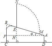 (2)若測得EN=0.8米,試計算小明頭頂由M點運動到N點的路徑弧MN的長度(結果保留π)