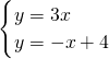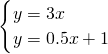 求A點坐標:將y=3x和y=0.5x+1組成方程組得