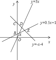分析:將三條直線的解析式組成相應方程組,可求得三個交點D、A、E的坐標,進而得出個三角形的高,根據(jù)B、C的縱坐標,可得到三角形的底,然后利用S