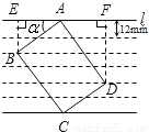 放在每格寬度為12mm的橫格紙中,恰好四個頂點(diǎn)都在橫格線上,已知