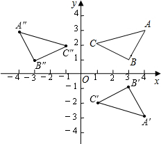 (3)所畫(huà)圖形如下所示,△A''B''C''即為所求,△A''B''C''三個(gè)頂點(diǎn)的坐標(biāo)分別為:A″(-4,3),B″(-3,1),C″(-1,2).