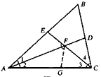 | 作軸對(duì)稱(chēng)的全等三角形“略”,寫(xiě)出畫(huà)法“略”;證明過(guò)程“略” (1)FE與FD之間的數(shù)量關(guān)系是FD=FE; (2)答:(1)中的結(jié)論FE=FD仍然成立 證明:如圖(4),在AC上截取AG=AE,連結(jié)FG。 因?yàn)椤?=∠2,AF為公共邊, 可證△AEF≌△AGF 所以∠AFE=∠AFG,F(xiàn)E=FG 由∠B=60。,AD、CE分別是∠BAC,∠BCA的平分線, 可得∠2+∠3=60。 所以∠AFE=∠CFD=∠AFG=60。 所以∠CFG=60。 由∠3=∠4及FC為公共邊,可得△CFG≌△CFD 所以FG=FD 所以FE=FD |