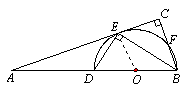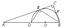| 已知:如圖, BD是半圓O的直徑,A是BD延長線上的一點,BC⊥AE,交AE的延長線于點C,交半圓O于點E,且E為 (1)求證:AC是半圓O的切線; (2)若 |