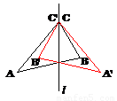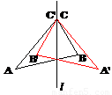 如圖所示,作出△ABC關(guān)于直線l的對稱三角形A'B'C'。