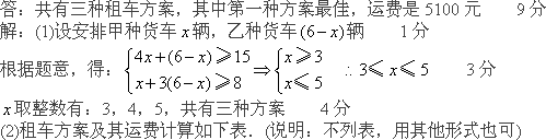 (2)若甲種貨車每輛需付運(yùn)費(fèi)1000元,乙種貨車每輛需付運(yùn)費(fèi)700元,請(qǐng)選出最佳方案,此方案運(yùn)費(fèi)是多少.
