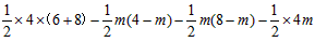 | 解:(1)利用中心對稱性質(zhì),畫出梯形OABC,圖“略”; ∵A,B,C三點與M,N,H分別關于點O中心對稱, ∴A(0,4),B(6,4),C(8,0); (2)設過A,B,C三點的拋物線關系式為 ∵拋物線過點A(0,4), ∴c=4,則拋物線關系式為 將B(6,4),C(8,0)兩點坐標代入關系式,得 (3)∵OA=4,OC=8, ∴AF=4-m,OE=8-m, ∴ = ∵ ∴當m=4時,S取最小值, 又∵0<m<4, ∴不存在m值,使S取得最小值; (4)當 |