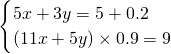 在早餐店里,王伯伯買5個(gè)饅頭,3個(gè)包子,老板少收2元, 只要5元.李太太買了11個(gè)饅頭,5個(gè)包子,老板以售價(jià)的九折優(yōu)惠,只要9元.若設(shè)饅頭每個(gè)x元,包子每個(gè)y元,則下列哪一個(gè)二元一次方程組可表示題目中的數(shù)量關(guān)系?( )