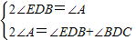 又∠A+∠AED=∠EDB+∠BDC,即2∠A=∠EDB+∠BDC,