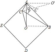 分析:把△ACO繞點A逆時針旋轉(zhuǎn)90°得到△AC′O′,根據(jù)旋轉(zhuǎn)的性質(zhì)可得AC′=AC,∠CAC′=90°,C′O′=CO,AO′=AO,然后判斷出△ACC′是等腰直角三角形,根據(jù)等腰直角三角形的性質(zhì)求出CC′,連接OB,然后求出點A、C、O、B四點共圓,求出∠BCO=∠OAB=45°,然后求出∠AC′O′=∠ACO=135°,判斷出點C、C′、O′三點共線,過點A作AF⊥CC′于F,根據(jù)等腰直角三角形的性質(zhì)可得AF=C′F=