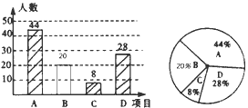 (1)樣本中最喜歡B項(xiàng)目的人數(shù)百分比是____,其所在扇形圖中的圓心角的度數(shù)是____;