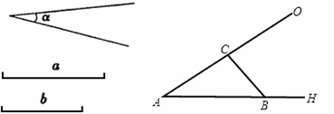 解:1、以點A為頂點,做∠OAH=∠ a;