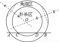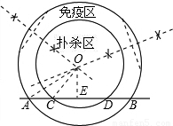高致病性禽流感是比SARS傳染速度更快的傳染病,為了防止禽流感蔓延,政府規(guī)定離疫點(diǎn)3km范圍內(nèi)為撲殺區(qū);離疫點(diǎn)3km—5km范圍內(nèi)為免疫區(qū),對(duì)撲殺區(qū)與免疫區(qū)內(nèi)的村莊、道路實(shí)行全封閉管理.現(xiàn)有一條筆直的公路AB通過(guò)禽流感病區(qū),如圖,在撲殺區(qū)內(nèi)公路CD長(zhǎng)為4km.