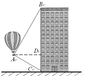 (本題滿分7分)如圖,熱氣球的探測(cè)器顯示,從熱氣球看一棟高樓頂部的仰角