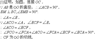 如圖,AB是⊙O的直徑,M是線段OA上一點(diǎn),過M作AB的垂線交AC于點(diǎn)N,交BC的延長線于點(diǎn)E,直線CF交EN于點(diǎn)F,且∠ECF=∠E.