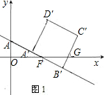 ②當(dāng)A′在x軸下方,但C′在x軸上方或x軸上時,即當(dāng)1<t≤2時,S為梯形A′GB′H的面積,可參照①的方法求出A′G和B′H的長,那么梯形的上下底就可求出,梯形的高為A′B′即正方形的邊長,可根據(jù)梯形的面積計算公式得出關(guān)于S、t的函數(shù)關(guān)系式.