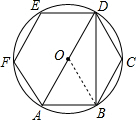 分析:連接OB,由多邊形是正六邊形可求出∠AOB的度數(shù),再根據(jù)圓周角定理即可求出∠ADB的度數(shù).