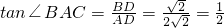 (3)根據(jù)Rt△AOC中邊長的數(shù)量關系可知,∠CAO=∠ACO=45°,則AC=3.過點BC作BD⊥AC,垂足為D點,S△ABC=3.可求得.∠BCO=45°,依次求出BD=CD=,AD=2,則tan∠BAC=