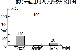 名,其中鍛煉未超過1小時(shí)的原因是“沒時(shí)間”的學(xué)生有