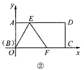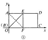 | (2)如圖①,連接BE,畫BE的中垂線交BC與點(diǎn)F,連接EF,△BEF是矩形ABCD的一個(gè)折痕三角形, ∵折痕垂直平分BE,AB=AE=2, ∴點(diǎn)A在BE的中垂線上,即折痕經(jīng)過(guò)點(diǎn)A, ∴四邊形ABFE為正方形, ∴BF=AB=2, ∴F(2,0); |