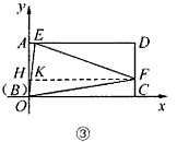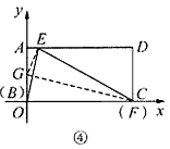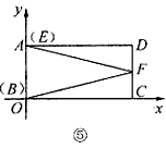 | (3)矩形ABCD存在面積最大的折痕三角形BEF,其面積為4,理由如下: ①當(dāng)F在邊BC上時(shí),如圖②所示, S△BEF≤ ②當(dāng)F在邊CD上時(shí),如圖③所示, 過(guò)F作FH∥BC交AB于點(diǎn)H,交BE于K, ∵S△EKF= S△BKF= ∴S△BEF≤ 即當(dāng)F為CD中點(diǎn)時(shí),△BEF面積最大為4, 下面求面積最大時(shí),點(diǎn)E的坐標(biāo), ①當(dāng)F與點(diǎn)C重合時(shí),如圖④所示, 由折疊可知CE=CB=4, 在Rt△CDE中,ED= ∴AE=4-2 ∴E(4-2 ②當(dāng)F在邊DC的中點(diǎn)時(shí),點(diǎn)E與點(diǎn)A重合,如圖⑤所示, 此時(shí)E(0,2), 綜上所述,折痕△BEF的最大面積為4時(shí),點(diǎn)E的坐標(biāo)為E(0,2)或E(4-2 |