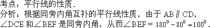 如圖,AB∥CD,∠DCE=80°,則∠BEF=