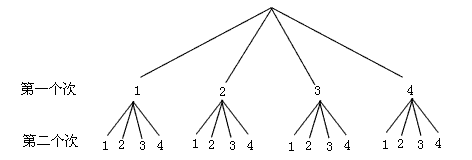 共16種情況,兩次數(shù)字相同的有4種,