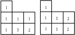 用小方塊塔成一個(gè)幾何體,使它從正面看和上面看如圖所示,這樣的幾何體有 種.它最少需要 個(gè)小立方體塊,最多需要 個(gè)小立方體塊.