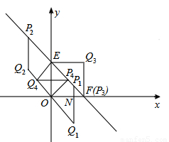 此時P3與點F重合,菱形OEQ3P3為正方形,∴Q3(4,4)。