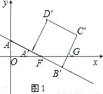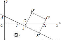 ②當(dāng)A′在x軸下方,但C′在x軸上方或x軸上時(shí),即當(dāng)1<t≤2時(shí),S為梯形A′GB′H的面積,可參照①的方法求出A′G和B′H的長(zhǎng),那么梯形的上下底就可求出,梯形的高為A′B′即正方形的邊長(zhǎng),可根據(jù)梯形的面積計(jì)算公式得出關(guān)于S、t的函數(shù)關(guān)系式.