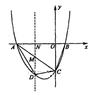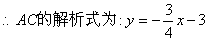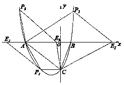 | (1)拋物線的解析式為 (2)過點(diǎn)D作DM∥y軸分別交線段AC和x軸于點(diǎn)M、N 在 解這個(gè)方程,得 ∴A(4,0)設(shè)直線AC的解析式為y=kx+b ∵ 設(shè) 當(dāng)x=-2時(shí),DM有最大值3 此時(shí)四邊形ABCD面積有最大值 (3)①過點(diǎn)C作CP1∥x軸交拋物線于點(diǎn)P1,過點(diǎn)P1作P1E1∥AC交x軸于點(diǎn)E1, 此時(shí)四邊形ACP1E1為平行四邊形, ∵C(0,-3) ∴設(shè)P1(x,-3) ∴ 解得 ∴ ②平移直線AC交x軸于點(diǎn)E,交x軸上方的拋物線于點(diǎn)P, 當(dāng)AC=PE時(shí),四邊形ACEP為平行四邊形, ∵C(0,-3) ∴設(shè)P(x,3), ∴ 解得 綜上所述存在3個(gè)點(diǎn)符合題意,坐標(biāo)分別是 |