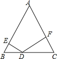分析:先設(shè)BD=x,則CD=2-x,根據(jù)△ABC是等邊三角形,得出∠B=∠C=60°,再利用三角函數(shù)求出ED和ED的長,即可得出DE+DF的值.