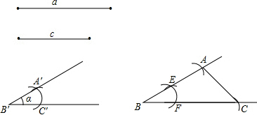 ③以相同長度為半徑,B為圓心,畫弧,交BC于點(diǎn)F,以F為圓心,C′A′為半徑畫弧,交AB于點(diǎn)E;