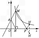 | 解:(1)由y=2x+2可知A(0,2),即OA=2, ∵tan∠AHO=2, ∴OH=1, ∵M(jìn)H⊥x軸, ∴點(diǎn)M的橫坐標(biāo)為1, ∵點(diǎn)M在直線y=2x+2上, ∴點(diǎn)M的縱坐標(biāo)為4.即M(1,4), ∵點(diǎn)M在y= ∴k=1×4=4; (2)存在, ∵點(diǎn)N(a,1)在反比例函數(shù) ∴a=4, 即點(diǎn)N的坐標(biāo)為(4,1), 過(guò)點(diǎn)N作N關(guān)于x軸的對(duì)稱點(diǎn)N1,連接MN1,交x軸于P(如圖所示),此時(shí)PM+PN最小, ∵N與N1關(guān)于x軸的對(duì)稱,N點(diǎn)坐標(biāo)為(4,1), ∴N1的坐標(biāo)為(4,﹣1), 設(shè)直線MN1的解析式為y=kx+b, 由 ∴直線MN1的解析式為 令y=0,得x= ∴P點(diǎn)坐標(biāo)為( |