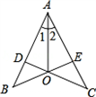 已知:如圖,CD⊥AB于點D,BE⊥AC于點E,BE、CD交于點O,且AO平分∠BAC.那么OB與OC相等嗎?談?wù)勀愕睦碛桑?/div>